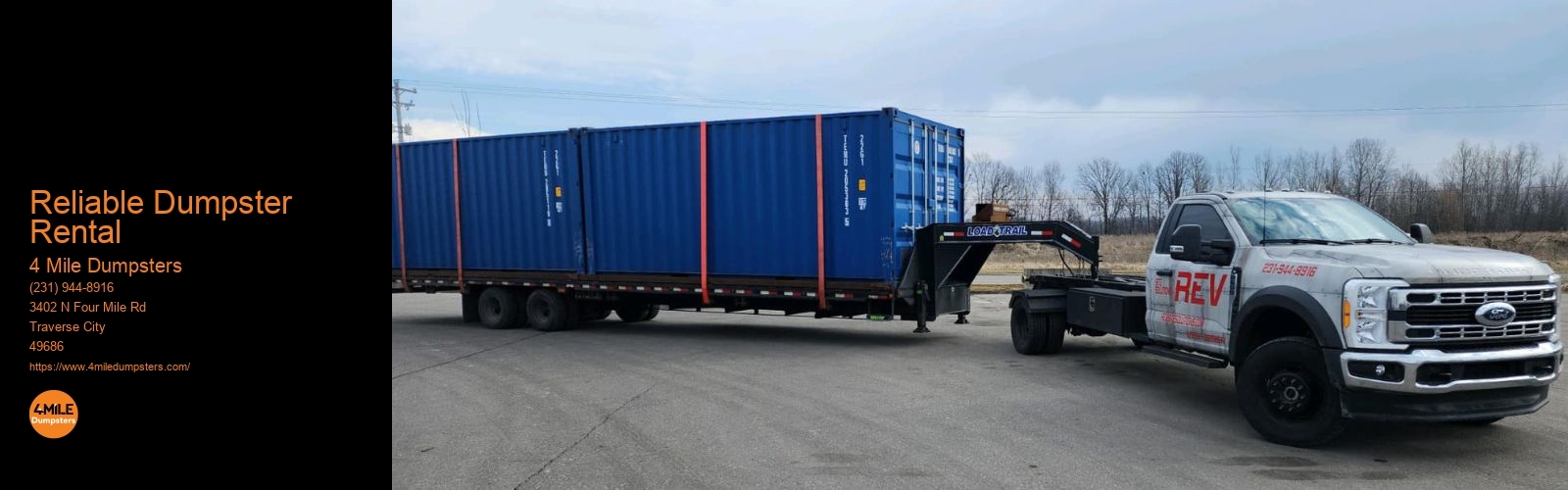 We can help you find the perfect storage solution and answer any questions you may have. Contact us for more information about our storage container rentals. Once you're finished, we'll pick it up and handle your disposal.4 Mile Dumpsters offers prompt and reliable service. We understand that eliminating waste can be a hassle, so we make it as easy as possible.